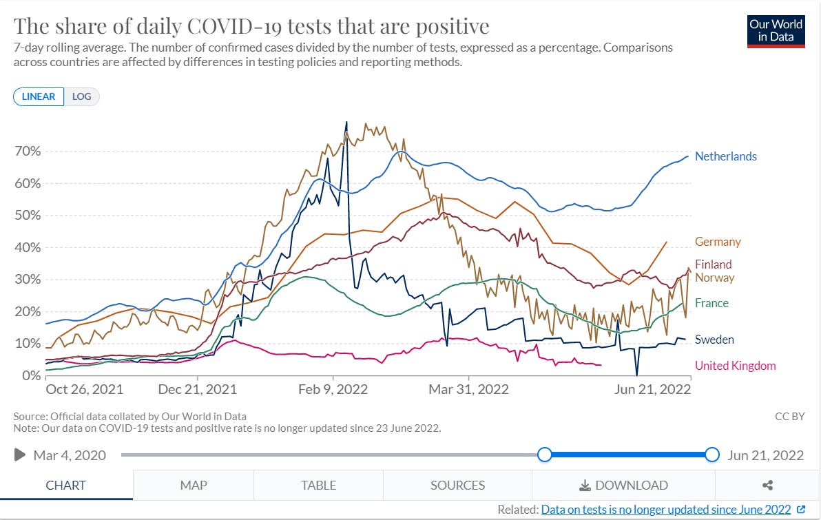 First, presenting this chart without mentioning that most tests used were antigen tests—not PCR—obscures the full picture. Antigen tests are less sensitive but correctly rule out infection in 99.5% of cases.